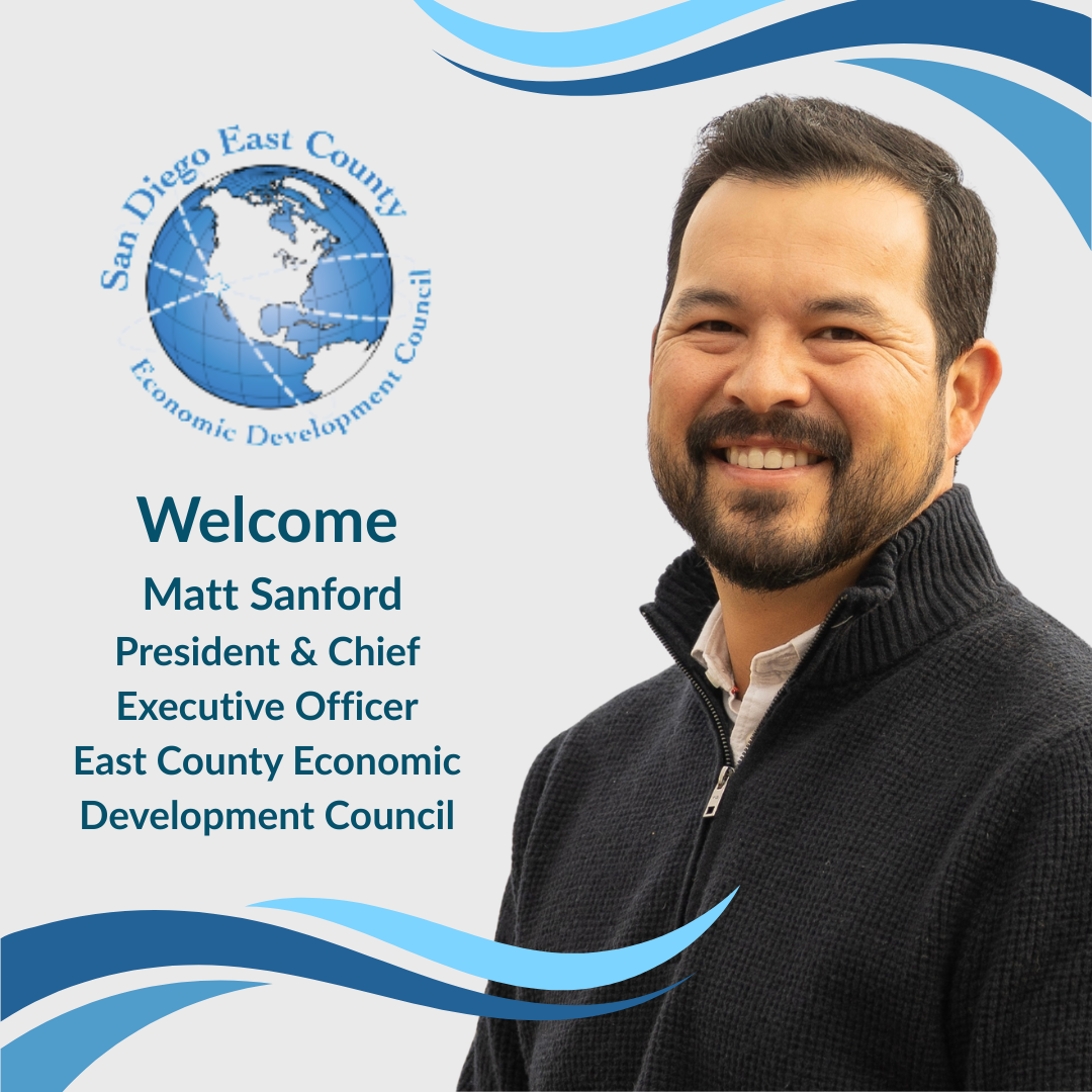 The East County Economic Development Council (ECEDC) is pleased to announce the appointment of Matt Sanford as Chief Executive Officer following a nationwide search conducted in partnership with executive search firm Blair Search Partners.